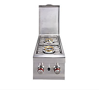 Heavy gauge stainless steel. High capacity burners and Infra-red accessories. 28", 34", 42" and up to 100,000 BTU heat capacity. Separate heat zone dividers and 3/8" grates. |